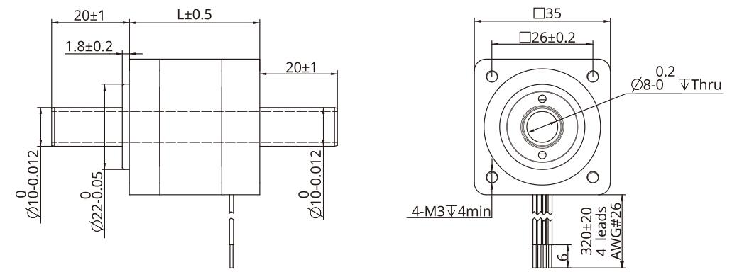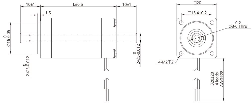 | Motor Code | Voltage (V) | Current (A) | Resistance (Ω) | Inductance (mH) | Weight (g) | Lead Wire No | Length (mm) |