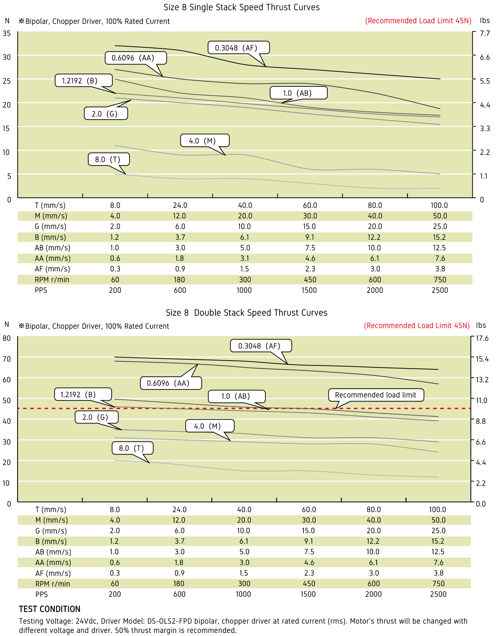 NEMA 23 Ball Screw Liner Stepper Motor Performance Curves: