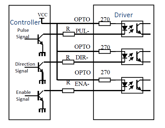 4.PUL-:  Pulse Control Signal Input, Rising Edge effective