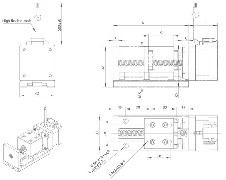 Motor Size | Voltage/ Phase (V) | Current/ Phase (A) | Resistance/ Phase (Ω) | Inductance/ Phase (mH) | Number of Lead Wires | Rotor Inertia (g.cm2) | Motor Weight (g) | Motor Length L (mm) |