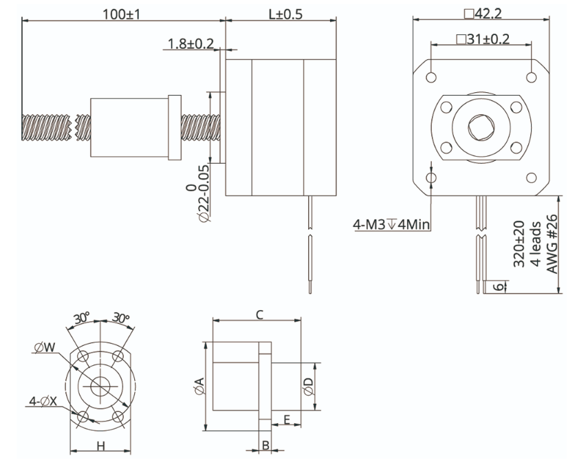 | Motor Code | Voltage (V) | Current (A) | Resistance (Ω) | Inductance (mH) | Lead Wire No | Length (mm) |