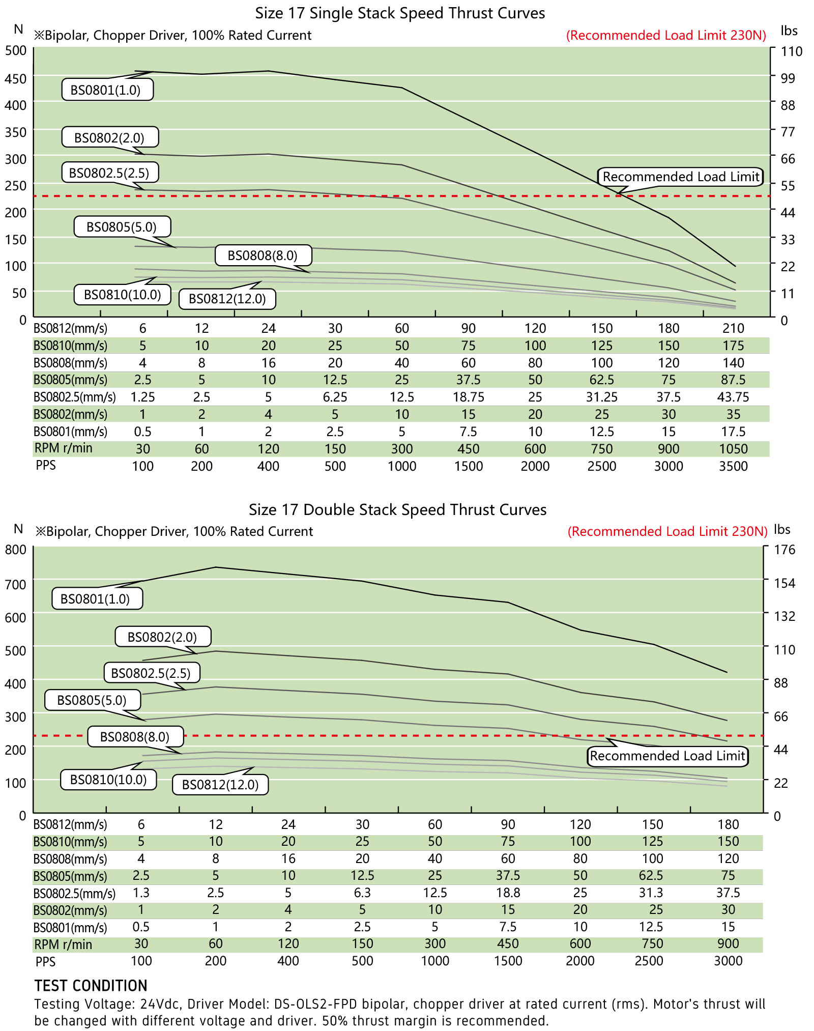 NEMA 17 Ball Screw Liner Stepper Motor Performance Curves: