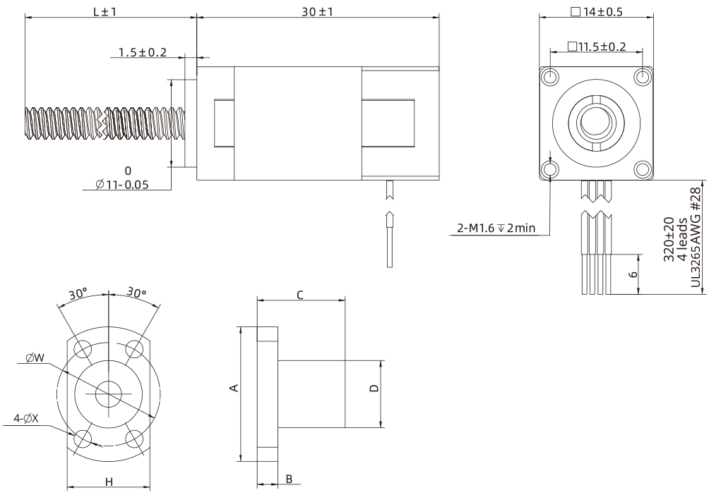 | Motor Code | Voltage (V) | Current (A) | Resistance (Ω) | Inductance (mH) | Weight (g) | Lead Wire No | Length (mm) |