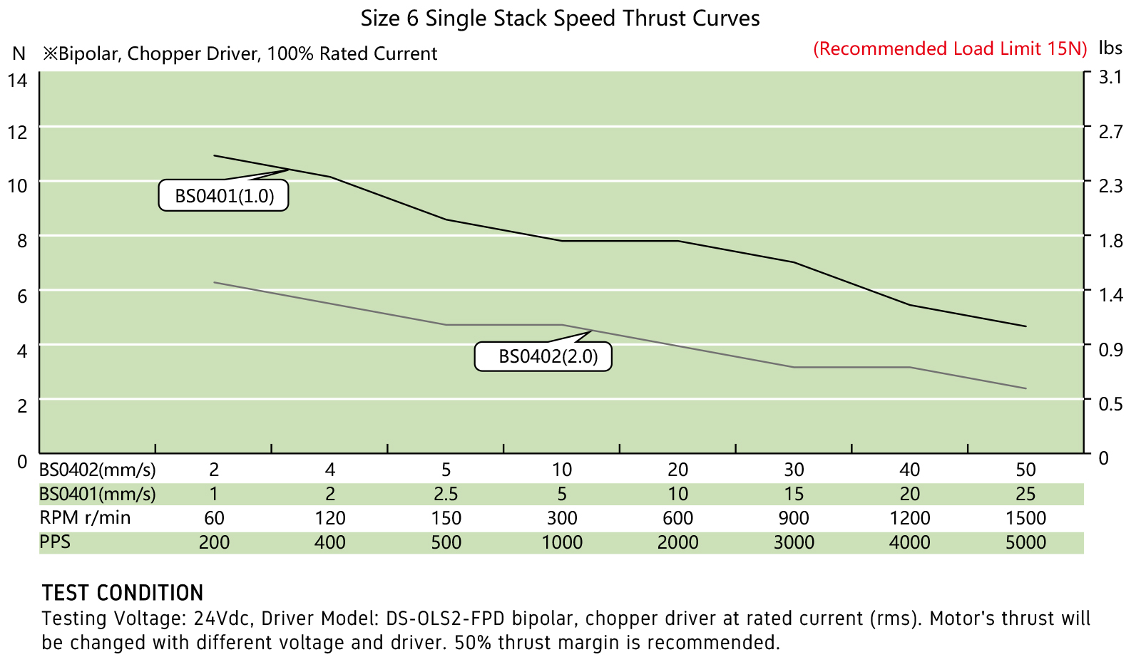 NEMA 6 Ball Screw Liner Stepper Motor Performance Curves: