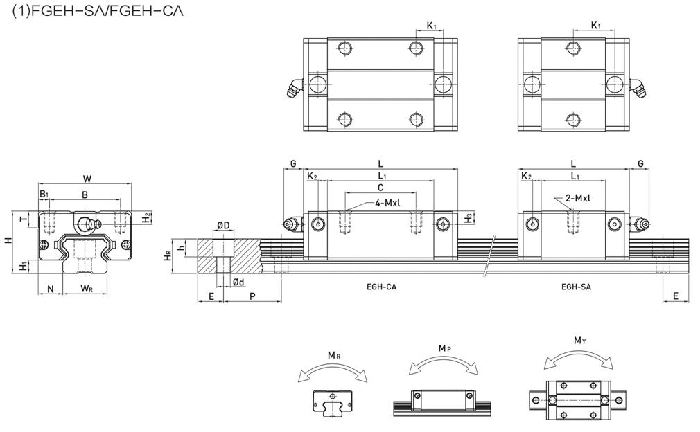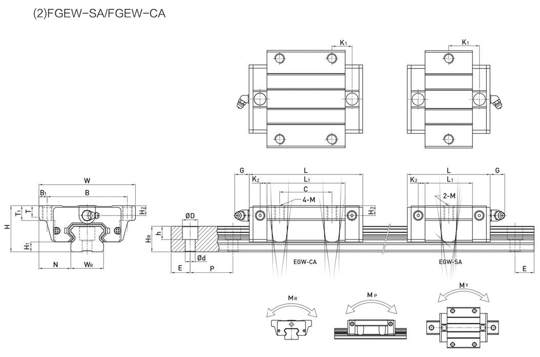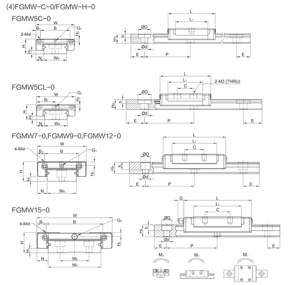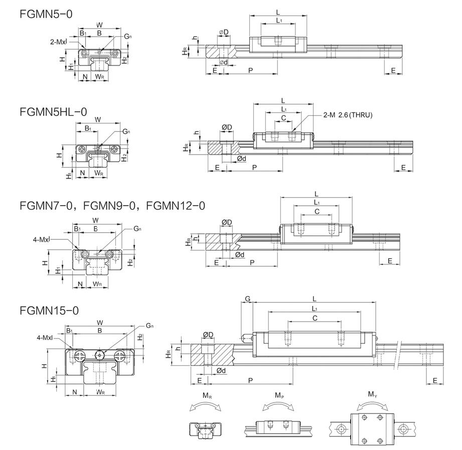 Linear Guideway, Heavy Load Ball Linear Guide, low assembly ball linear guide, and miniature ball linear guide: